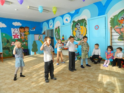 На праздник пригласили пап. Дети рассказали стихотворения, посвещенные папам, спели песни, исполнили танцы и вместе с папами мерились силами. Папы участвовали в различных играх- состязаниях. Например папам было дано задание вспомнить свое детство и сделать бумажный самолет. С заданием почти все справились. Затем их дети должны были этот самолет пропустить через обруч.
